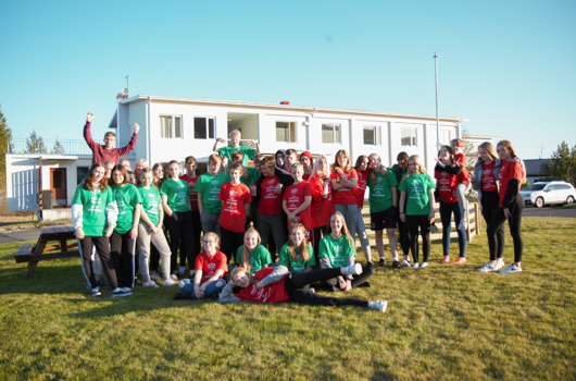 „Við erum öll ótrúlega ánægð. Nemendurnir eru jákvæðir og kátir og þeim líður afskaplega vel,“ segir Júlía Guðmundsdóttir kennari við Vættaskóla í Grafarvogi. Nemendur í 9. bekk skólans voru þeir fyrstu sem komu í endurbættar Ungmenna- og tómstundabúðir UMFÍ að Laugarvatni í vikunni.