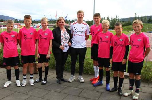 Hópur ungra Þórsara sem tóku þátt á Unglingalandsmóti UMFÍ og kepptu undir nafninu Þorparar gáfu 160 þúsund krónur í Minningarsjóð um Baldvin Rúnarsson.