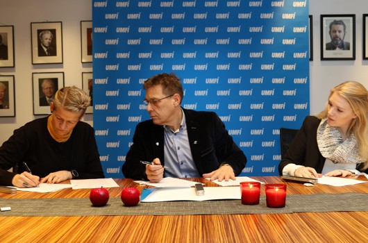 Unglingalandsmót UMFÍ verður haldið á Höfn í Hornafirði um verslunarmannahelgina 2019. Matthildur Ásmundardóttir, bæjarstjóri á Höfn í Hornafirði, Haukur Valtýsson, formaður UMFÍ, og Jóhanna Íris Ingólfsdóttir, formaður USÚ, skrifuðu undir samstarfssamning þess efnis í dag.