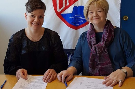 Ingibjörg Klara Helgadóttir, nýkjörinn formaður Ungmennasambands Skagafjarðar (UMSS) og Ásta Pálmadóttir, sveitarstjóri Sveitarfélagsins Skagafjarðar, skrifuðu í morgun undir samning á milli félagsins og sveitarfélagsins. Með samningnum skuldbindur sveitarfélagið sig til að styrkja UMSS árlega.