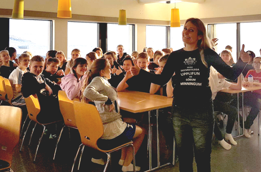 Sextán nemendur Íþrótta- og heilsufræðum við Háskóla Íslands komu ásamt einum kennara sínum í heimsókn í þjónustumiðstöð UMFÍ í Sigtúni í Reykjavík í dag. Sabína Steinunn Halldórsdóttir, landsfulltrúi UMFÍ, tók á móti hópnum og fræddi gestina um sögu UMFÍ og það sem framundan er í starfseminni.