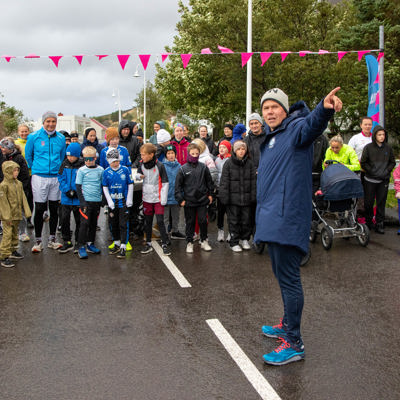 Ásgeir lagði hlaupurum línurnar í aðdraganda hlaupsins og ræsti þá.