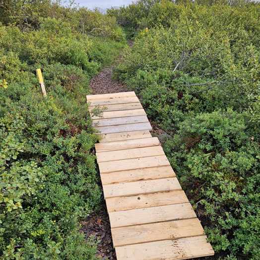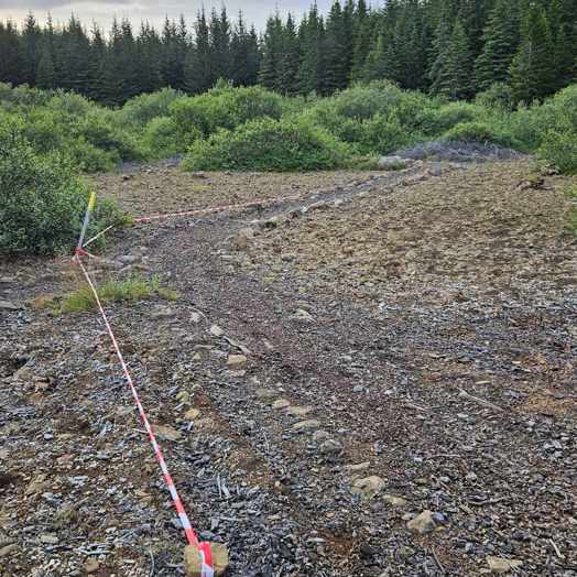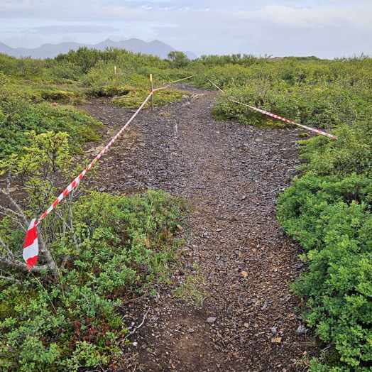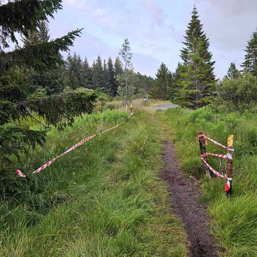 Keppni í fjallahjólreiðum fer fram á sunnudag. Keppnisstjóri og aðrir sjálfboðaliðar hafa lokið við að merkja keppnisbrautina að mestu. Mark verður á akvegi.