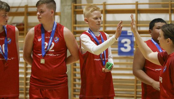 Edvard Þór Ingvarsson steig stór skref á Unglingalandsmóti UMFÍ í Borgarnesi um helgina. Hann er með þroskahömlun, einhverfu og Tourette og kom á mótið með Special Olympics-liði Hauka í Hafnarfirði til að taka þátt í Körfuboltamóti Íþróttasambands fatlaðra. Hann skráði sig líka í pílukast og bogfimi, badminton og langstökk í frjálsum íþróttum en náði ekki að taka þátt í síðasttöldu greininni þar sem hún skaraðist á við aðrar.