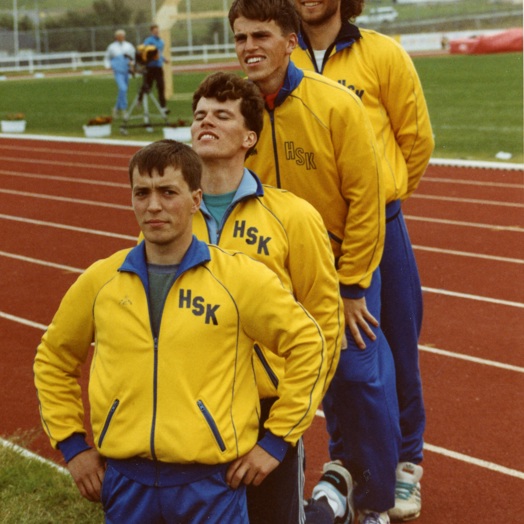 Á einni af myndunum hér að neðan má sjá boðhlaupssveit HSK á Landsmóti UMFÍ í Mosfellsbæ árið 1990. Frá vinstri: Engilbert, Jón Birgir Guðmundsson, Ólafur Guðmundsson og Jón Arnar Magnússon.