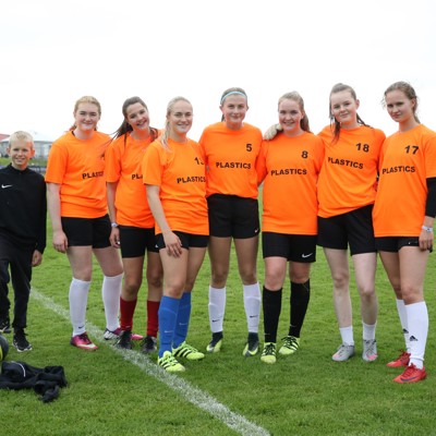 Fimleikastelpur og körfuboltastelpur keppa í knattspyrnu