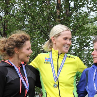 Það var glatt á hjalla hjá þeim Ingveldi, Kristínu Kristjánsdóttur og Ólöfu Jónsdóttur þegar þær urðu fremstar í utanvegahlaupi í Hveragerði. Allar tóku þær þátt í nokkrum greinum.