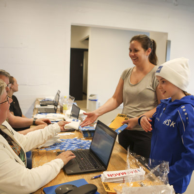 Hér má sjá nokkrar myndir af þátttakendum sækja mótsgögn sín og gesti sem hafa komið sér fyrir á tjaldsvæðinu.