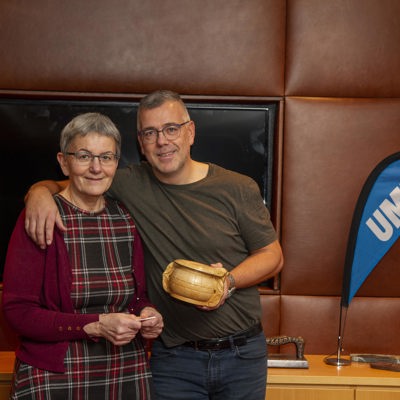 Guðmundur L. Gunnarsson, framkvæmdastjóri ungmennafélagsins Fjölnis í Grafarvogi, fékk í dag loksins afhentan askinn góða. Eins og kunnugt er var Guðmundur valinn matmaður sambandsþings UMFÍ á síðasta þingi að Laugarbakka í Miðfirði í október. Guðríður Aadnegard, formaður Héraðssambandsins Skarphéðins (HSK), afhenti Guðmundi askinn í þjónustumiðstöð UMFÍ.