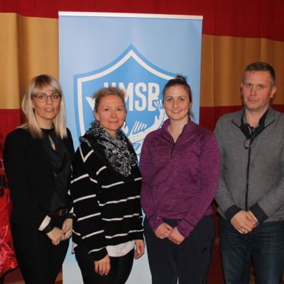 Hann heiðraði jafnframt nokkra sjálfboðaliða UMSB með starfsmerki. Merkið hlutu þau Ásgeir Ásgeirsson, Guðríður Ebba Pálsdóttir og Hrönn Jónsdóttir.