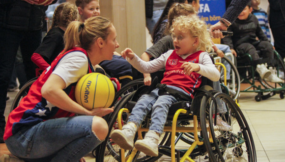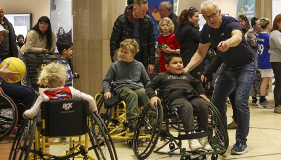 Mikill fjöldi fólks fylgdist með kynningu á hjólastólakörfubolta í Kringlunni á laugardag. Bæði var tilefnið að æfingar eru hafnar í hjólastólakörfubolta fyrir börn með fötlun hjá Fjölni og ÍR. Körfubolti er líka ein af þeim fimm greinum sem boðið verður upp á þegar Íslandsleikarnir fara fram á Selfossi í lok mars.