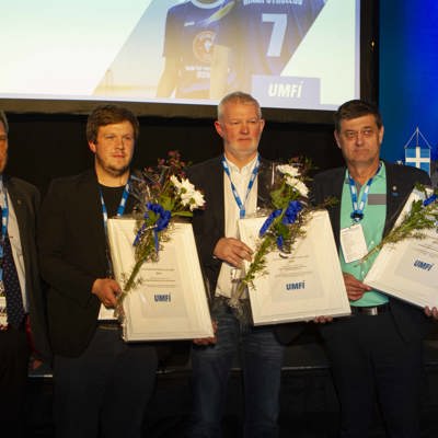 Formenn sambandsaðilanna þriggja tóku við viðurkenningunni fyrir hönd hvers aðila.