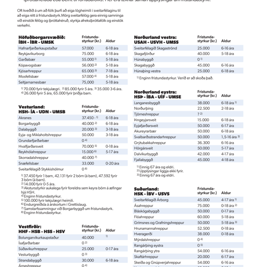 Hér má sjá dæmi um frístundastyrki á ýmsum stöðum um allt land.
