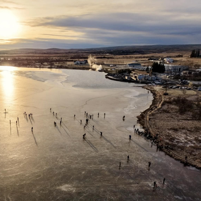 Um 130 manns tóku þátt í sannkallaðri ísveislu á Laugarvatni laugardaginn 17. janúar. Þar fékk fólkið tækifæri til að prófa ýmislegt sem hægt er að gera á ís, svo sem fara á skauta, fara í krullu, veiða í gegnum dorgholu og skauta á ísilögðu vatninu. Fólk kom víðs vegar að af Suðurlandi til að taka þátt í viðburðinum, svo sem fólk sem dvaldi í orlofshúsum KÍ á Flúðum en heyrði fréttainnslag Magnúsar Hlyns fjölmiðlamanns í útvarpi.