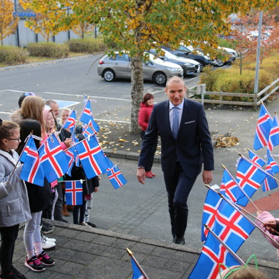 Blaðamannafundur var haldinn í Fellaskóla í dag í tilefni af Forvarnardeginum 2019 sem haldinn verður í flestum grunn- og framhaldsskólum landsins á miðvikudag. Á fundinn í dag mættu Guðni Th. Jóhannesson, forseti Íslands, Dagur B. Eggertsson borgarstjóri, Alma D. Möller landlæknir og fleiri.