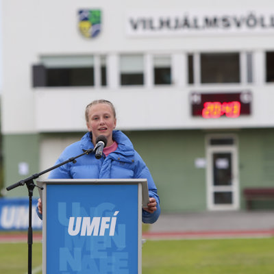 Auk Jódísar fluttu ávarp þau Jóhann Steinar Ingimundarson, formaður UMFÍ, Dagmar Ýr Stefánsdóttir, sveitarstjóri Múlaþings, bauð fólk velkomið og Benedikt Jónsson, formaður Ungmenna- og íþróttasambands Íslands, gerði það sömuleiðis.