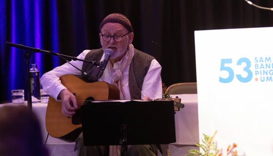 Áður en hann lék lagið sagði hann áhorfendum sögu þess og tengingu lagsins við UMFÍ.