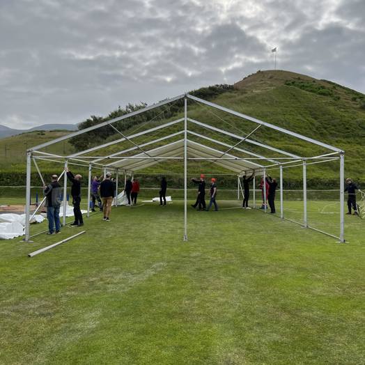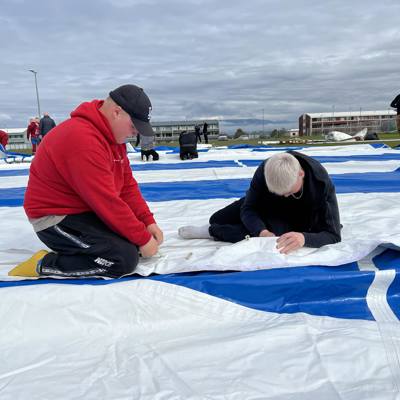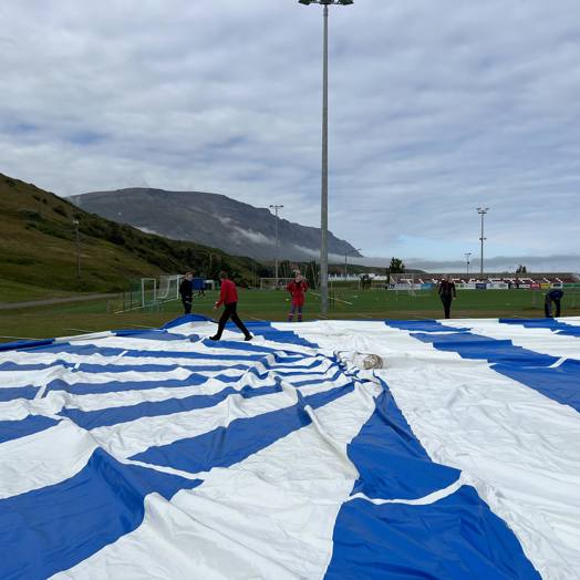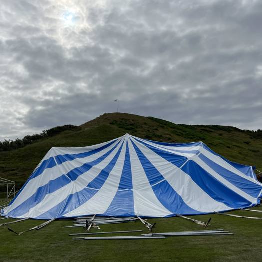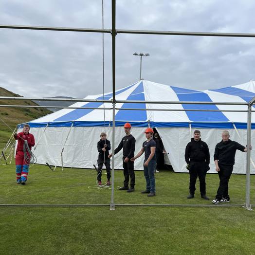 Hér að neðan má sjá verkefnið frá því tjöldin voru flutt úr gámi og reist á mótssvæðinu.