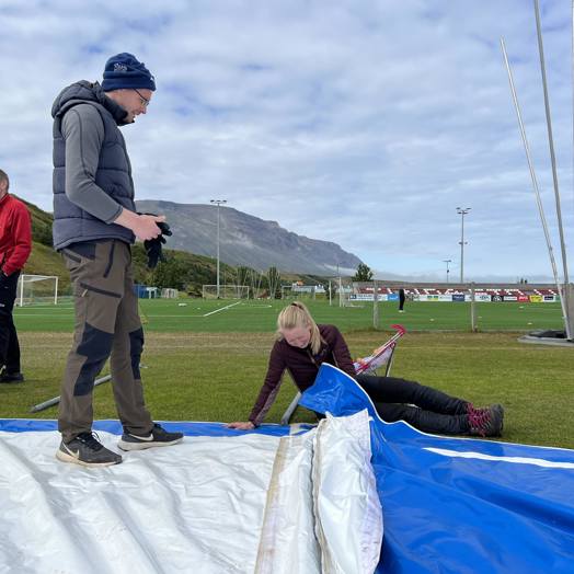 Með félögunum unnu þau Ómar Bragi Stefánsson, framkvæmdastjóri móta UMFÍ, og Pálína Ósk Hraundal, verkefnastjóri mótsins, og segja þau uppsetninguna hafa gengið vel.