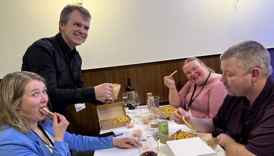 Að neðan er Sigurbjörn Árna ásamt konu sinni og þingfulltrúum Héraðssambands Þingeyinga að gæða sér á kjúklingaborgurum eftir að hafa snætt humarsúpu og lambafilleti. Eins má sjá hann taka til máls á þinginu og hampa kokkum og þjónum hótelsins, eftir að hann fékk viðurkenninguna.