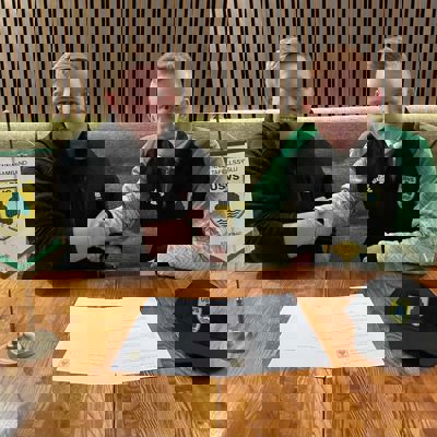 Á myndinni má sjá þegar þeir Sigurður, sem er klæddur í treyju USVS, og Jóhann Bragi Elínarson, formaður USVS, skrifuðu undir ráðningarsamning á dögunum.