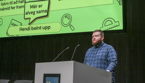 Í kringum 130 nemendur í 10. bekk nokkurra grunnskóla í Reykjavík tóku þátt í lýðræðislegum kosningum framan við tónlistar- og ráðstefnuhúsið Hörpu í morgun. Valið stóð á milli fjögurra málefna, sem rætt var um áður en gengið var til kosninga.