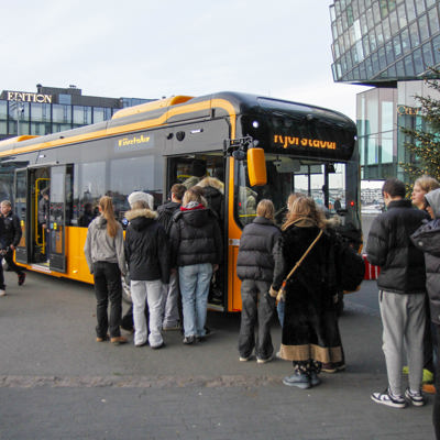 Ungt fólk kaus í strætisvagni