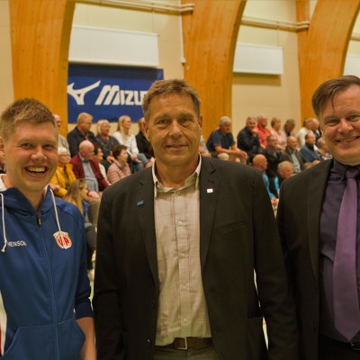 Á myndinni hér að ofan er Haukur á milli þeirra Gunnars Gunnarssonar, formanns UÍA, og Karls Óttars Péturssonar, bæjarstjóra Fjarðabyggðar.