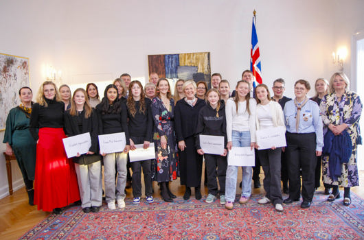Halla Tómasdóttir, forseti Íslands, afhenti verðlaun Forvarnardagsins við hátíðlega athöfn á Bessastöðum á laugardag. Keppnin fólst í gerð kynningarefnis sem tengist þema Forvarnardagsins.