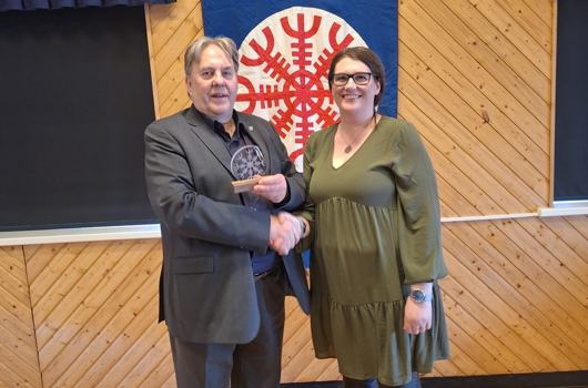 „Þótt þingin séu langt í burtu þá er mikilvægt að mæta og við erum afar ánægð með mætinguna,“ segir Erla Björk Jónsdóttir, formaður Héraðssambands Strandamanna (HSS). Á þinginu fékk Jóhann Björn Arngrímsson merki HSS í formi glerlistaverks.