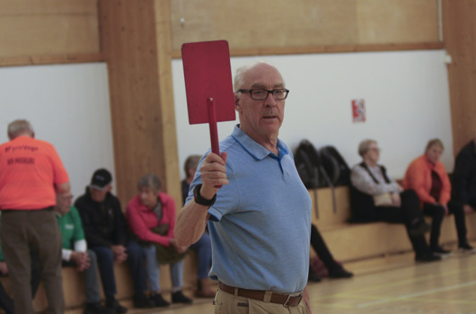„Dymbilmótið í boccía var góð upphitun fyrir alla,“ að sögn Flemming Jessen, fyrrverandi kennara, skólastjóra og forvígismanns í íþróttum aldraðra. Hann hefur oft komið að skipulagi Landsmóts UMFÍ 50+, sem fram fer á Siglufirði og Ólafsfirði í júní.