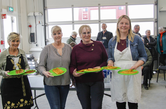 Áhorfendur gengu á lyktina í keppni í pönnukökubakstri á Landsmóti UMFÍ 50+ sem fram fer í Vogum á Vatnsleysuströnd um helgina. Áhorfendur fengu að smakka á pönnukökunum að keppni lokinni.