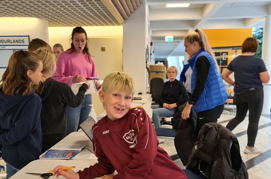 Straumur fólks hefur legið í upplýsingamiðstöðina fyrir Unglingalandsmót UMFÍ í Fjölbrautaskóla Suðurlands í dag. Upplýsingamiðstöðin opnaði klukkan 15:00 og koma þangað þátttakendur mótsins ásamt fjölskyldum sínum til að ná í mótsgögn, aðgangskort að tjaldsvæði og ýmisleg fylgihluti.