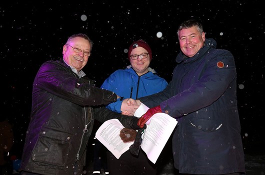 Formenn UMFÍ, UÍA og sveitarstjóri Múlaþings skrifuðu undir samning um Unglingalandsmót UMFÍ sem verður haldið á Egilsstöðum um næstu verslunarmannahelgi.