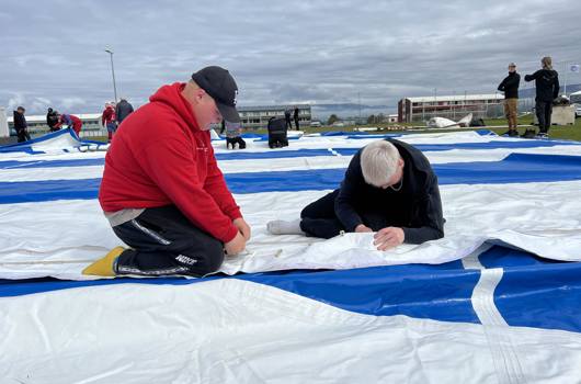 Félagar úr Björgunarsveitinni Skagfirðingasveit og ungmennafélagar frá Neista á Hofsósi og Ungmennasambandi Skagafjarðar reistu á Sauðárkróki í dag tvö stærstu tjöldin sem einkenna Unglingalandsmót UMFÍ. Þetta eru skemmti- og samkomutjöld þar sem tónleikar fara fram á hverju kvöldi á meðan mótinu stendur um næstu verslunarmannahelgi.